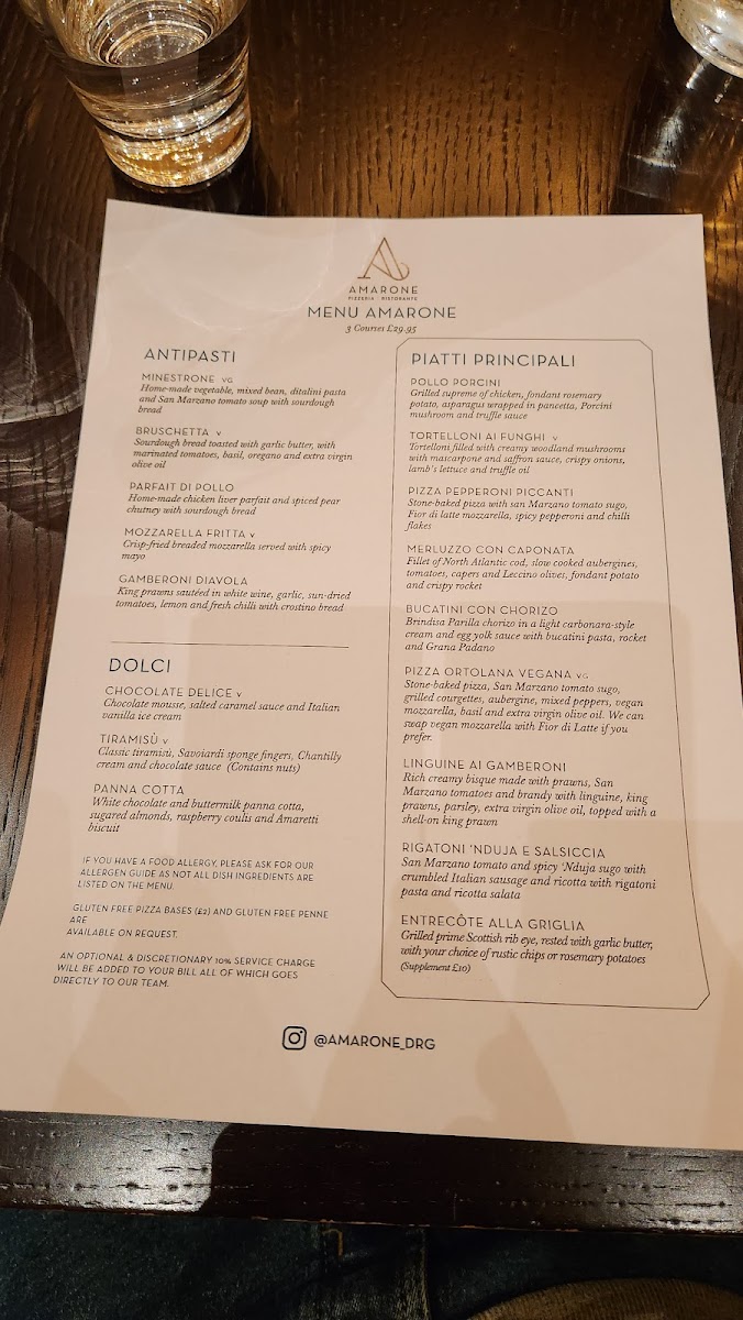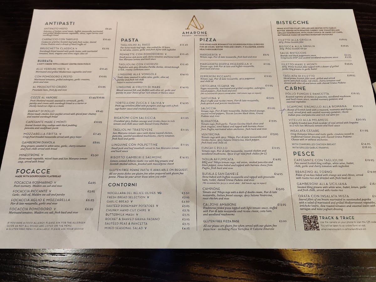 Whether you're visiting for a date night, a business lunch, or a celebratory dinner, Amarone's menu offers enough variety and sophistication to suit a range of occasions. For anyone seeking a reliable and authentic Italian dining experience in Edinburgh, this venue remains a top contender.